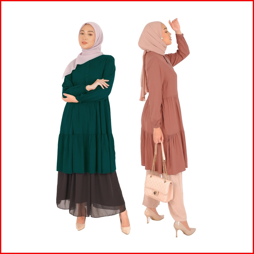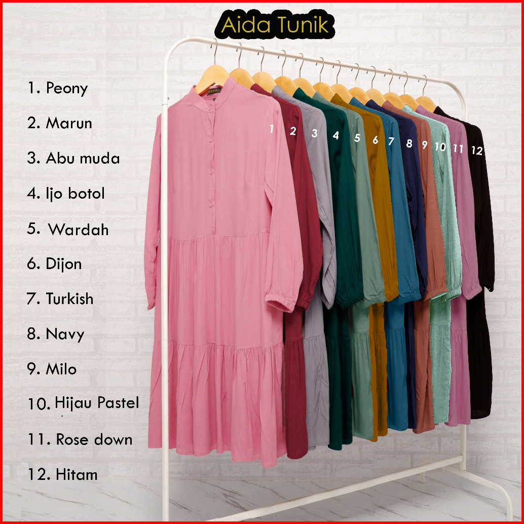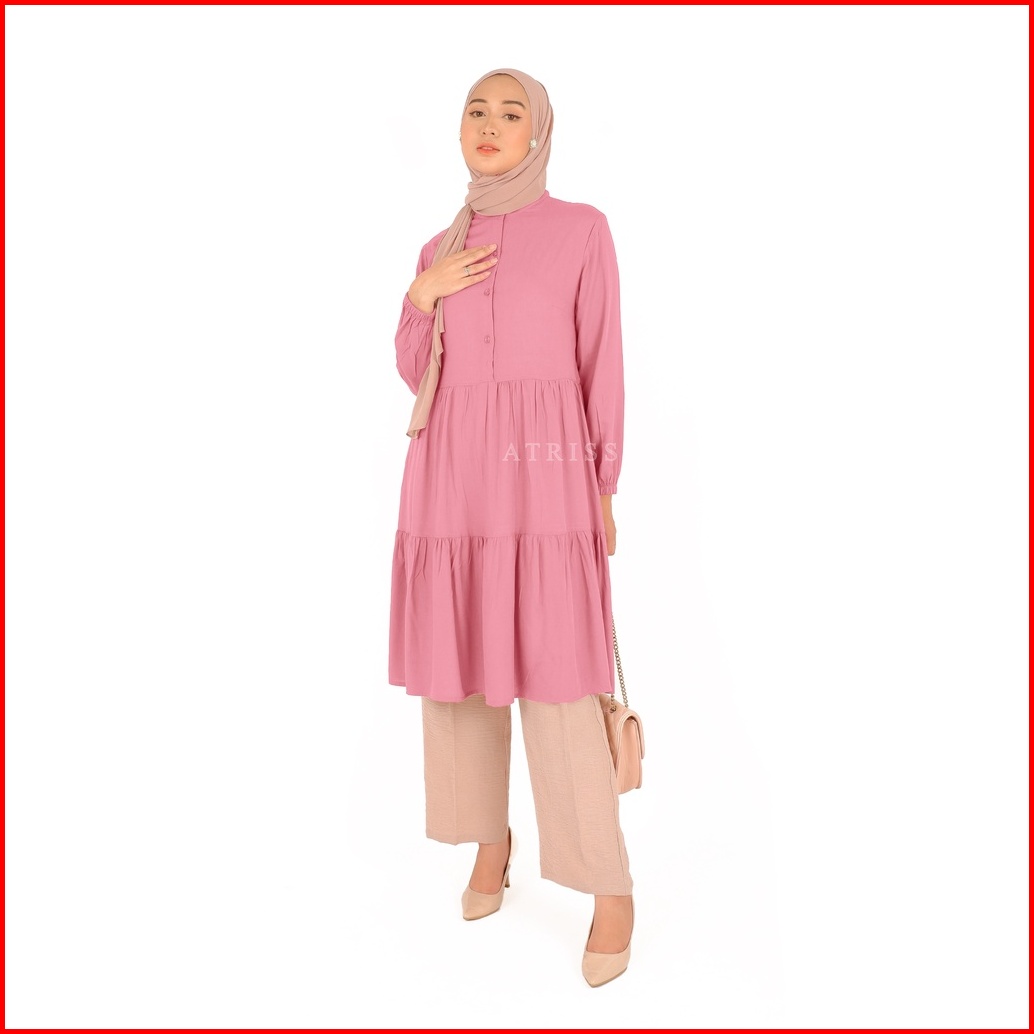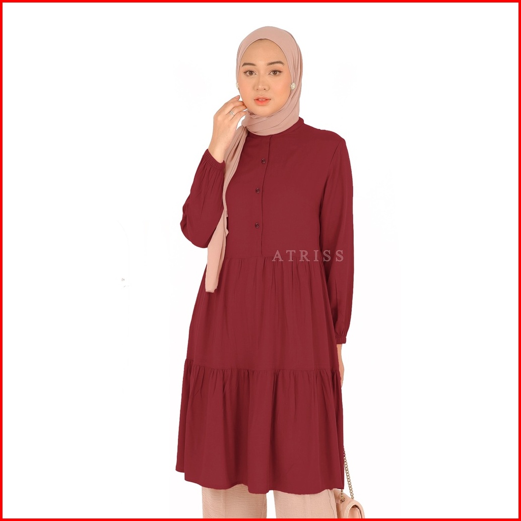 Atriss Aida Long Tunik - Kemeja Shirt Dress Katun Rayon Kecil Bigsizejumbo Formal Kasual Busui Elegant Kekinian Premium