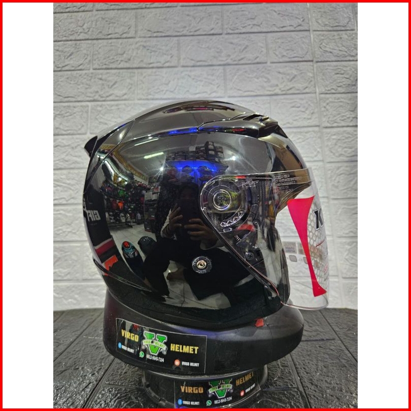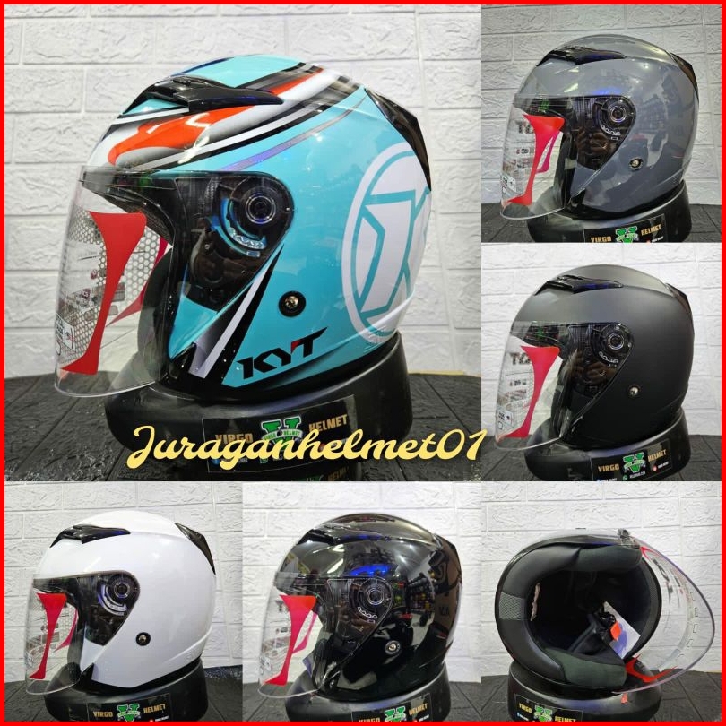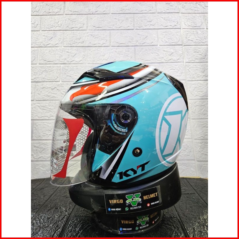 Helm Kyt Venom Open Junior Aqua Blue Black White Gorila Grey Helm Anak