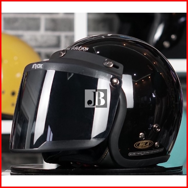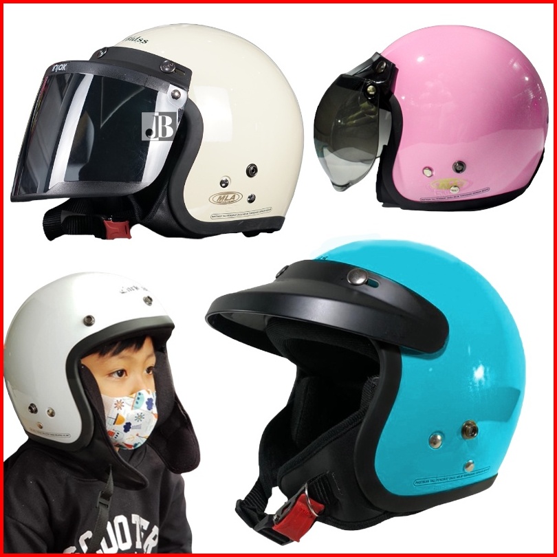 Helm Bogo Anak Junior Carcids Polos Kaca Datar Injak Hitam Sni Untuk Anak Usia 3-7 Tahun Free Packing Dus-c0d-