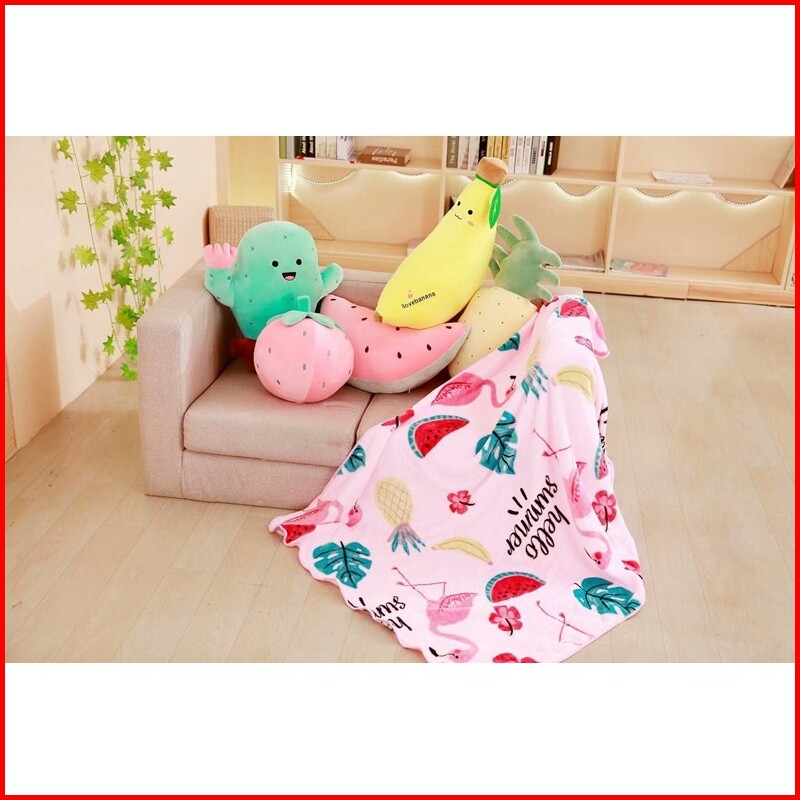 Logu Bantal Selimut Buah-buahan Balmut Anak Lucu Bantal Selimut Flamingo 3d