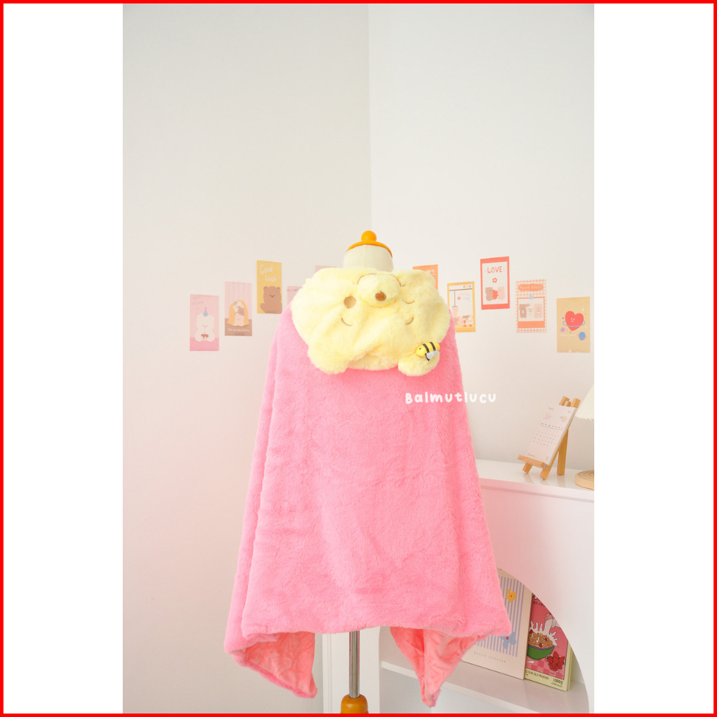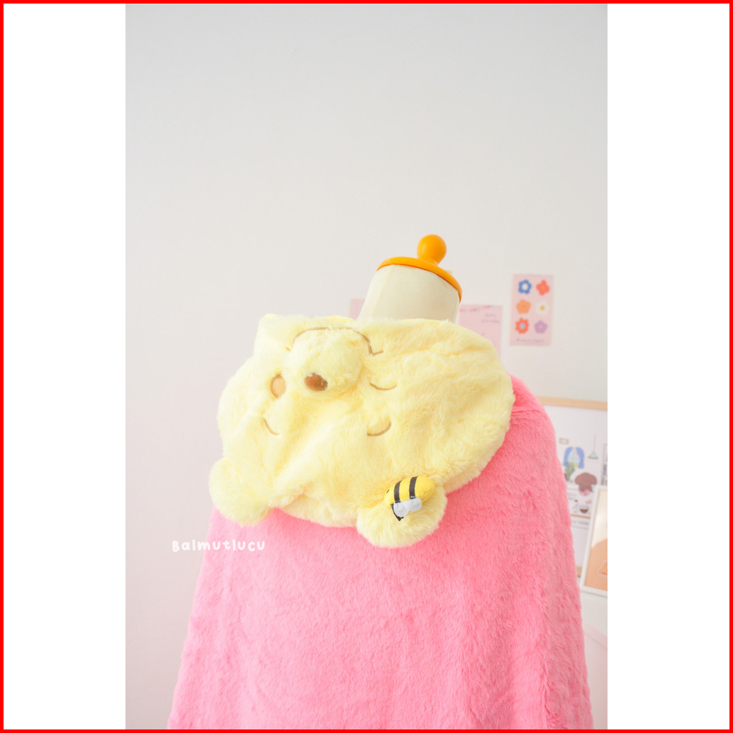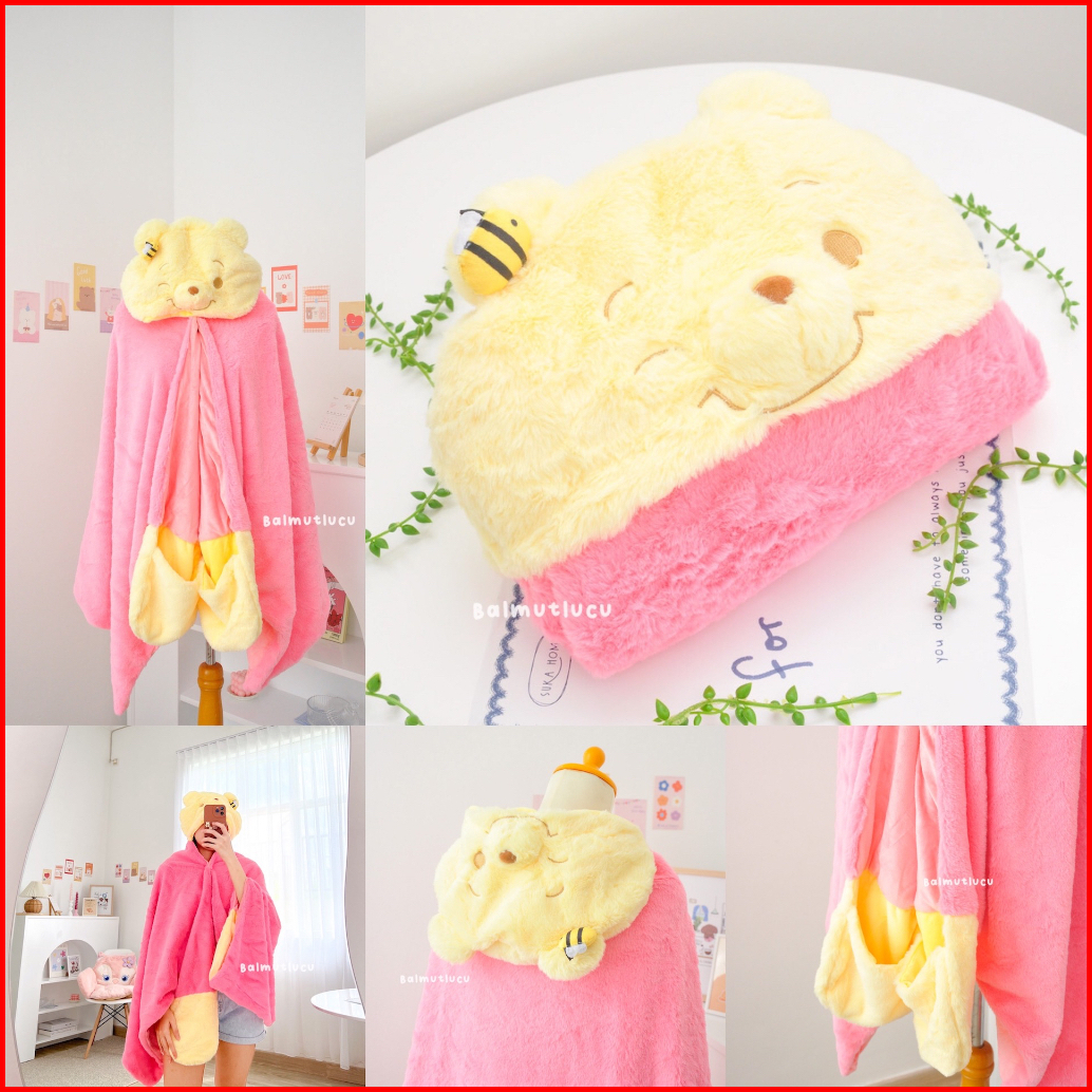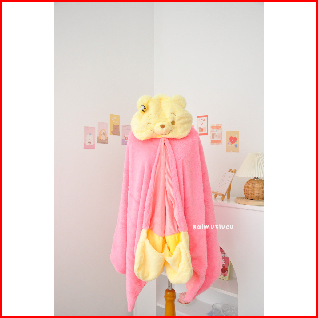 Balmutlucu Selimut Hoodie Karakter Winnie The Pooh Ada Sarung Tangan Jubah Selimut Anak Dewasa Lucu