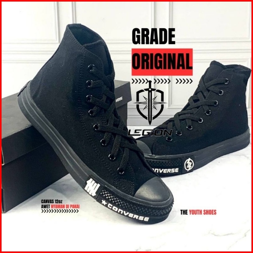 Sepatu Sneakers Convers All Star Full Hitam Pria Wanita Casual Sekolah Kerja Premium Vietnam