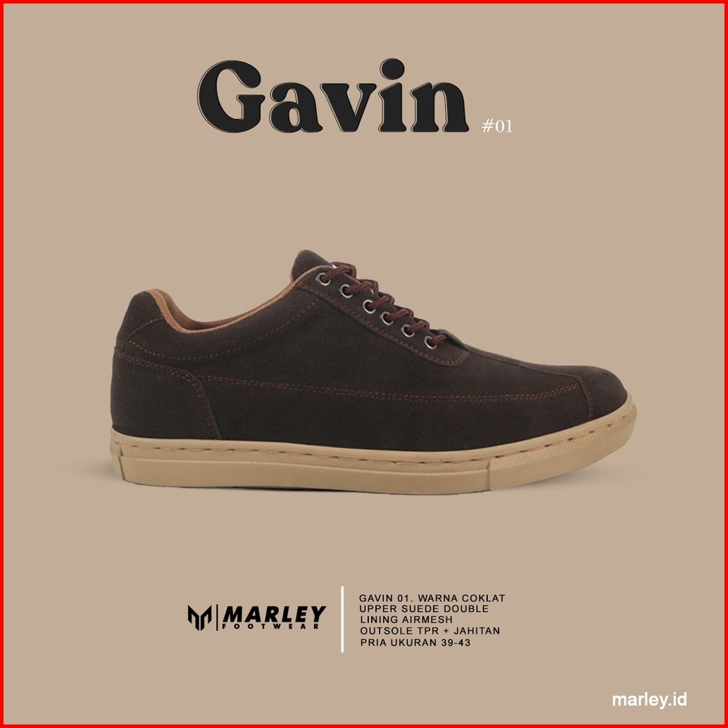Marley Gavin 01 - Marley Sepatu Sneakers Pria Kets Casual Coklat Bahan Suede