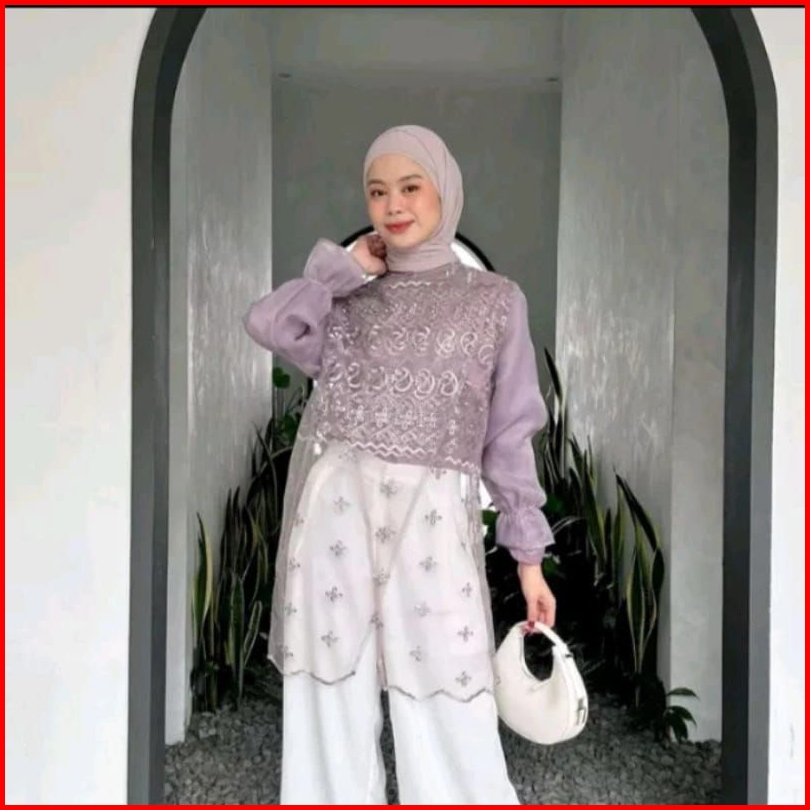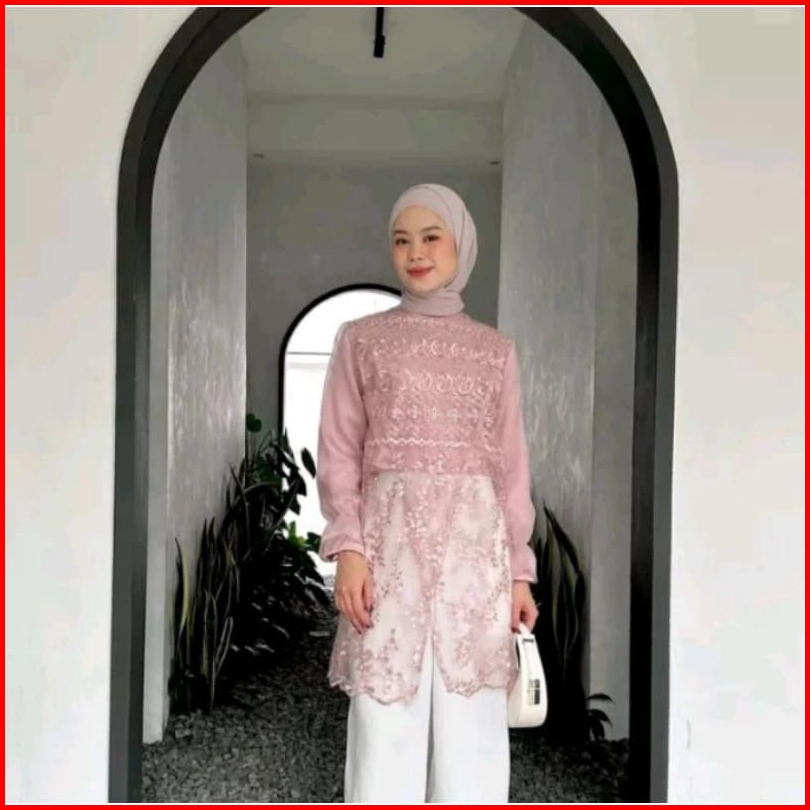 Rumi Outer Tunik Brukat Organza Outer Brukat Kondangan Wisuda Hari Raya