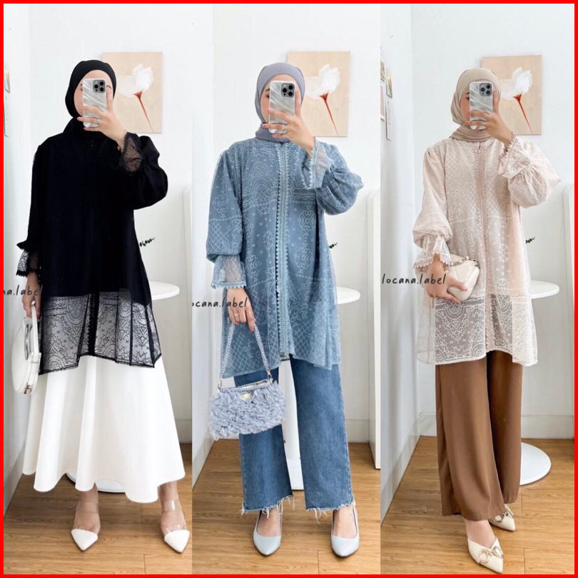 Tunik Lace Brukat Maura Lace Tunik Renda Blouse Brukat Outer Kondangan Baju Lebaran Tulle Naura Renda Locana