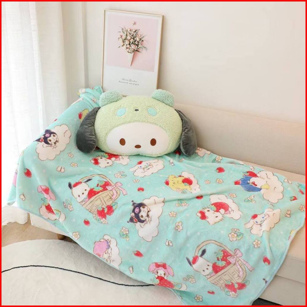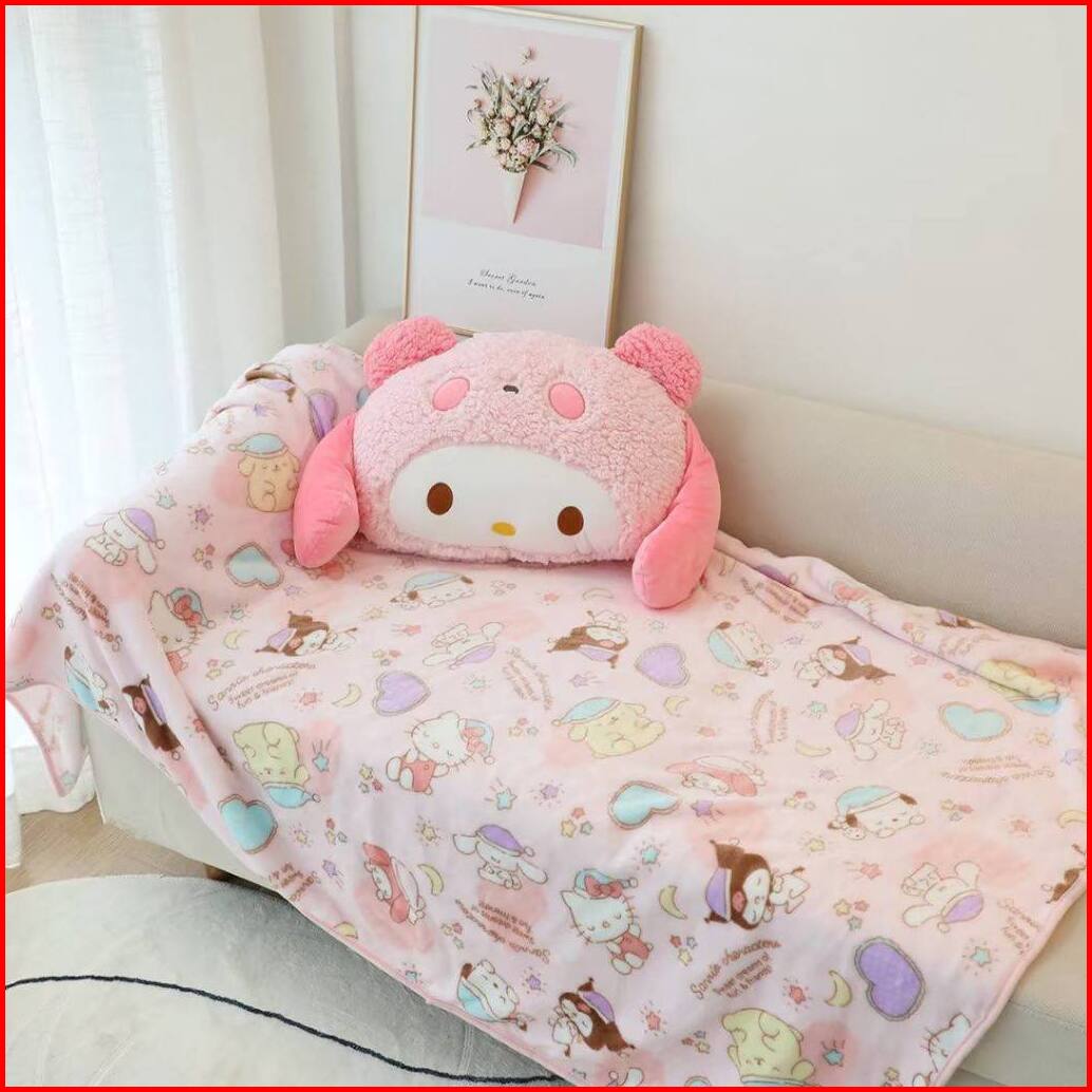 Balmut Bantal Selimut Boneka Cinnamoroll Melody Kuromi Pompompurin Pochacco Dog Pillow Blanket Lucu