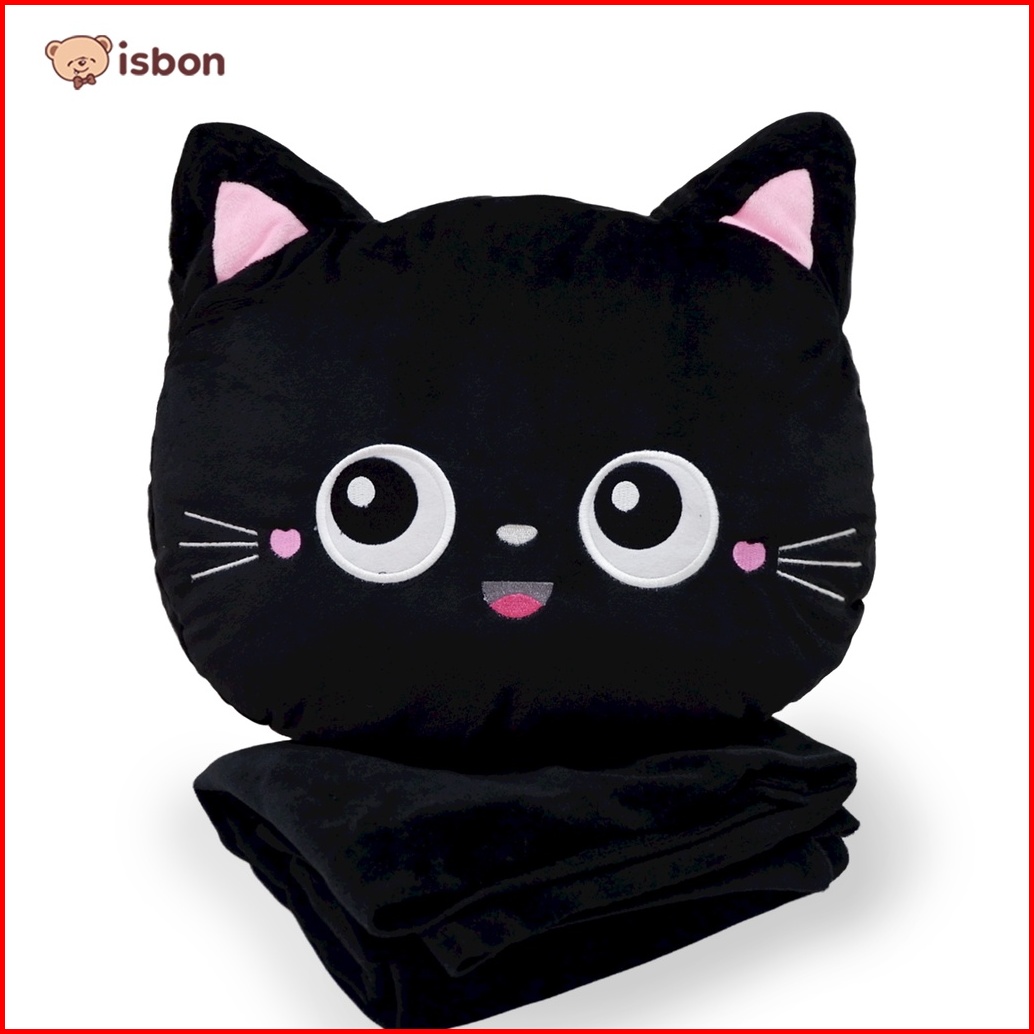 Istana Boneka Balmut Bantal Selimut Kucing Hitam Mono Cocok Untuk Traveling Mudah Dibawa Bahan Halus