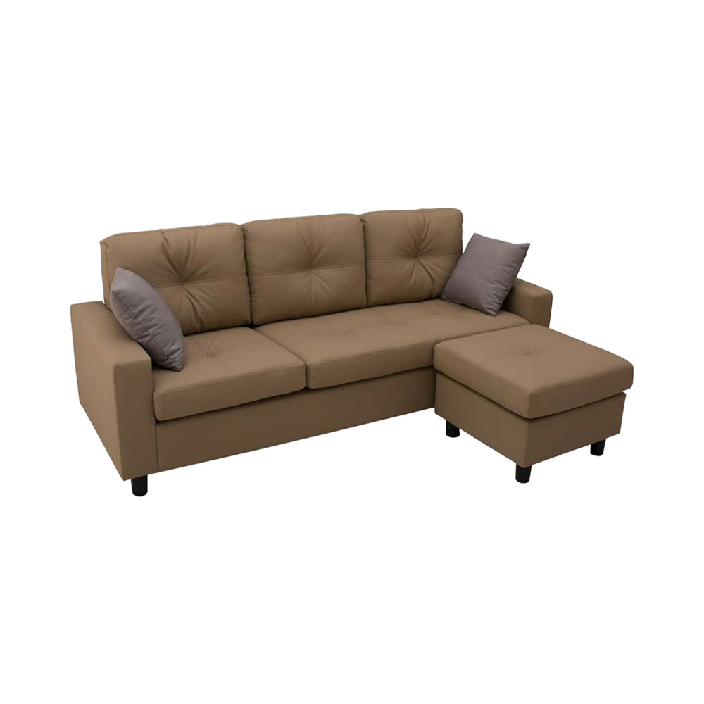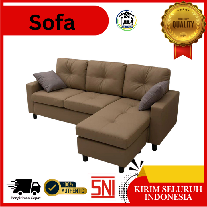 SOFA BED KULIT SELMA MODULAR SUDUT COKELAT TEMPAT DUDUK EMPUK TEBAL TERMURAH FURNITURE INTERIOR RUMAH