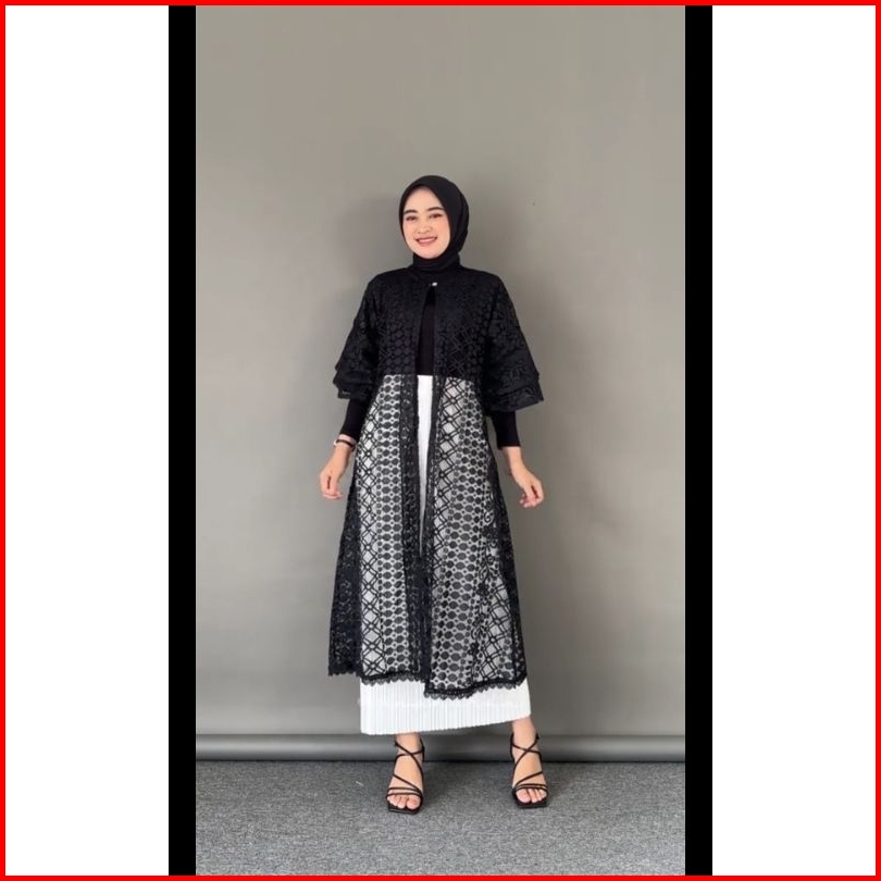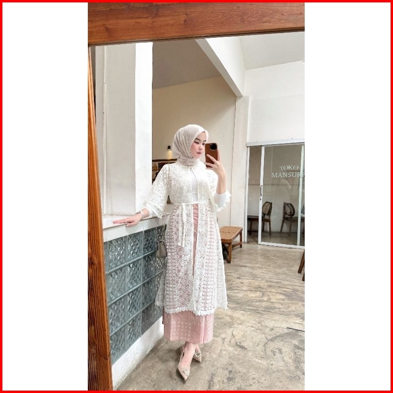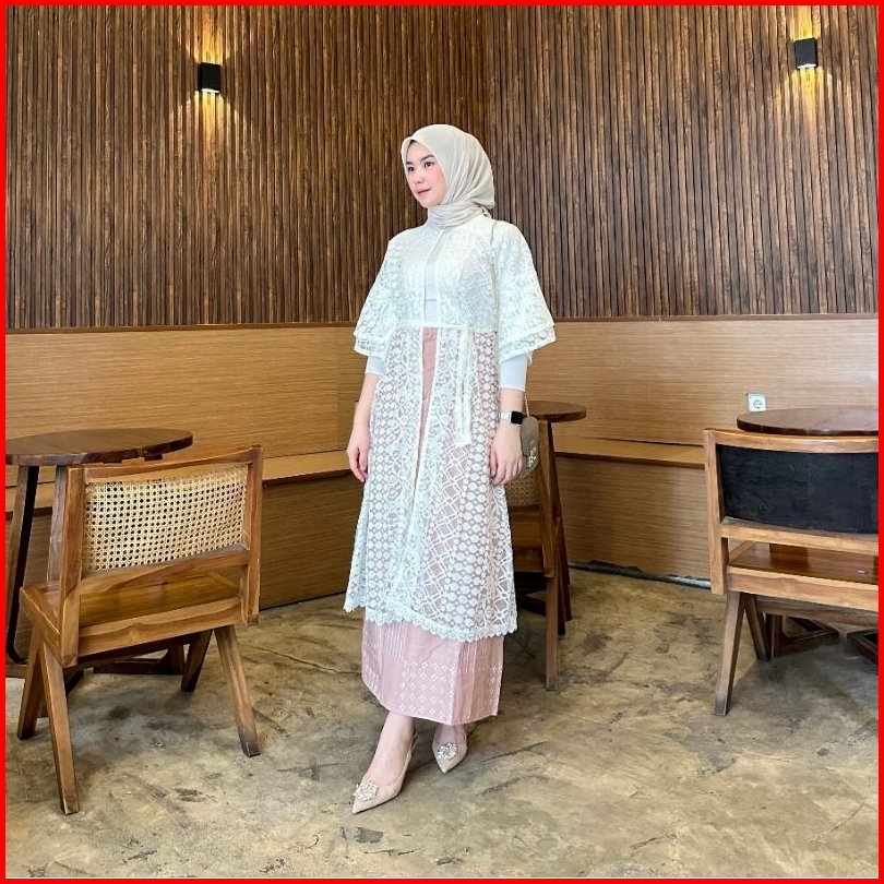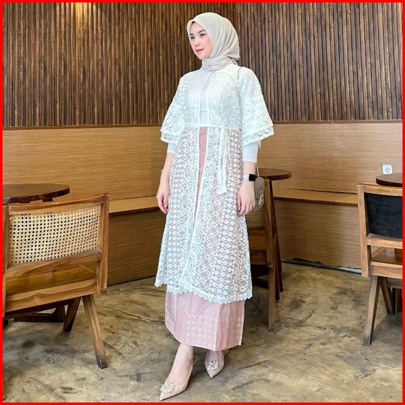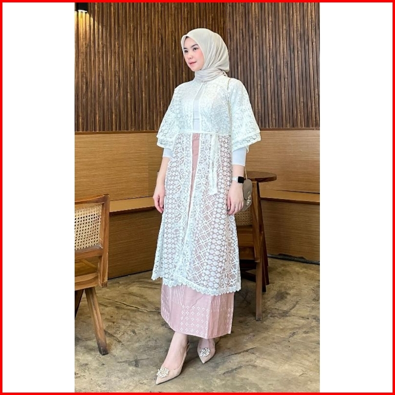 White Outer Brukat Cardigan Brokat Lengan Pendek Ruffle Atasan Outher Brukat Outer Brokat Kondangan Lebaran Outer Brocad