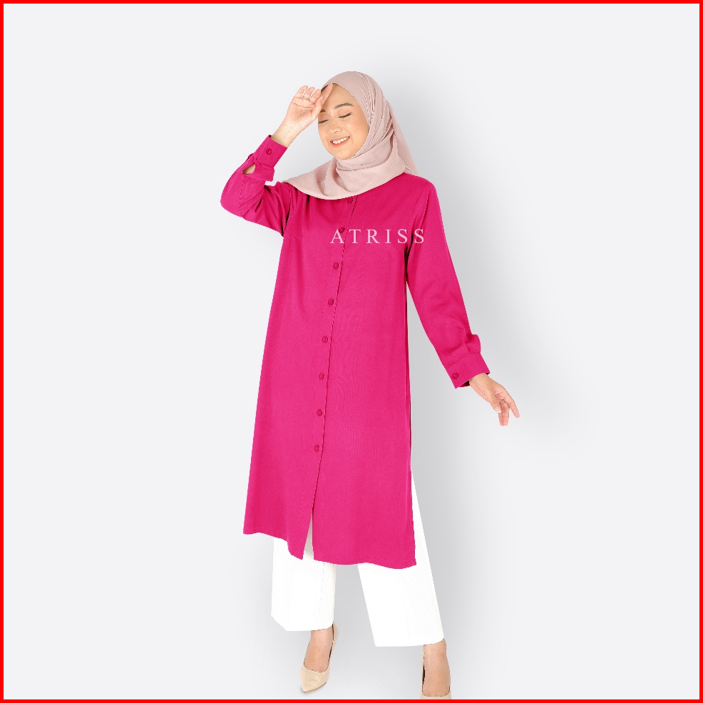 Atriss Atina Long Tunik - Kemeja Shirt Dress Kecil Bigsize Jumbo Formal Kasual Busui Elegant Kekinian Premium Lebaran Tr