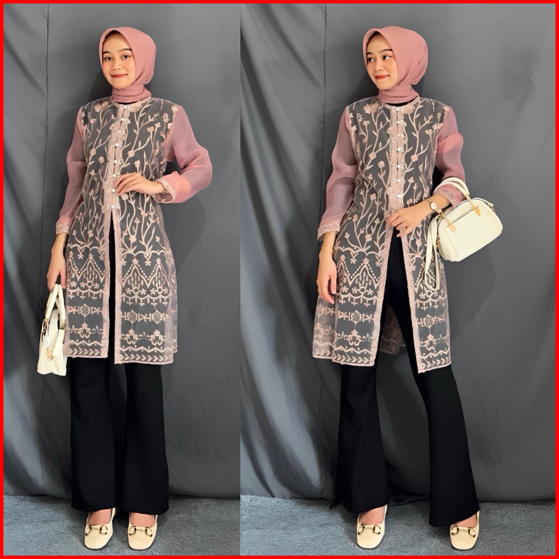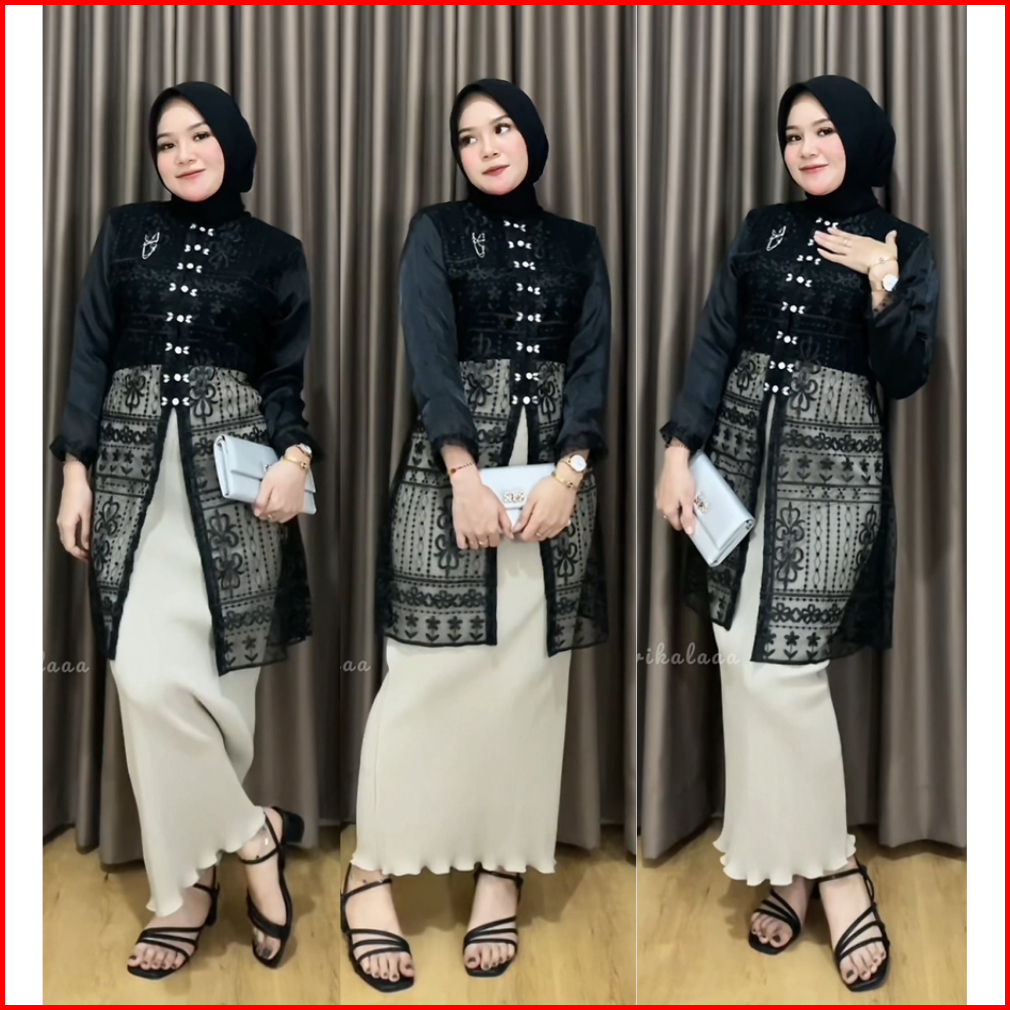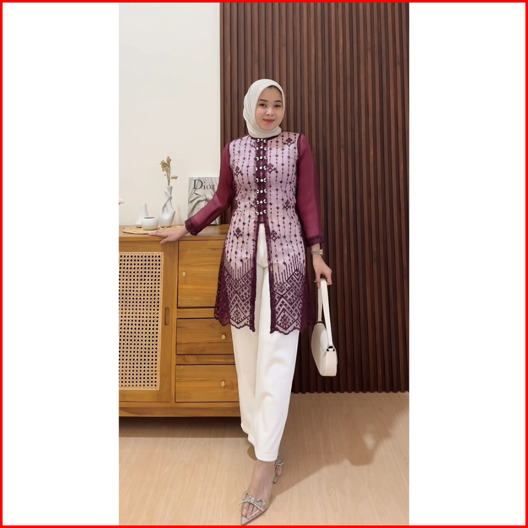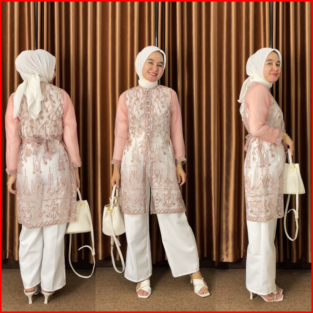 Hadju Tunik Brukat Bordir Sapto Tunik Brokat Tali Kancing Mutiara Payet Diamond Baju Kondangan Wisuda Seragaman Bridesma