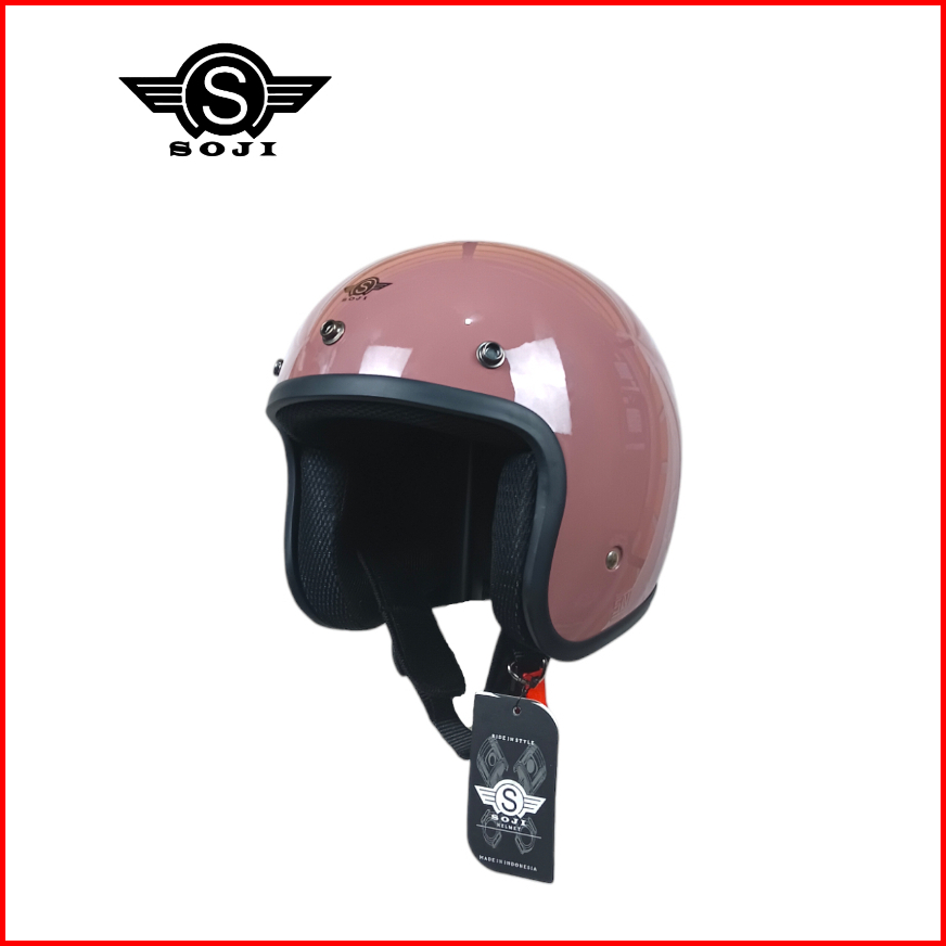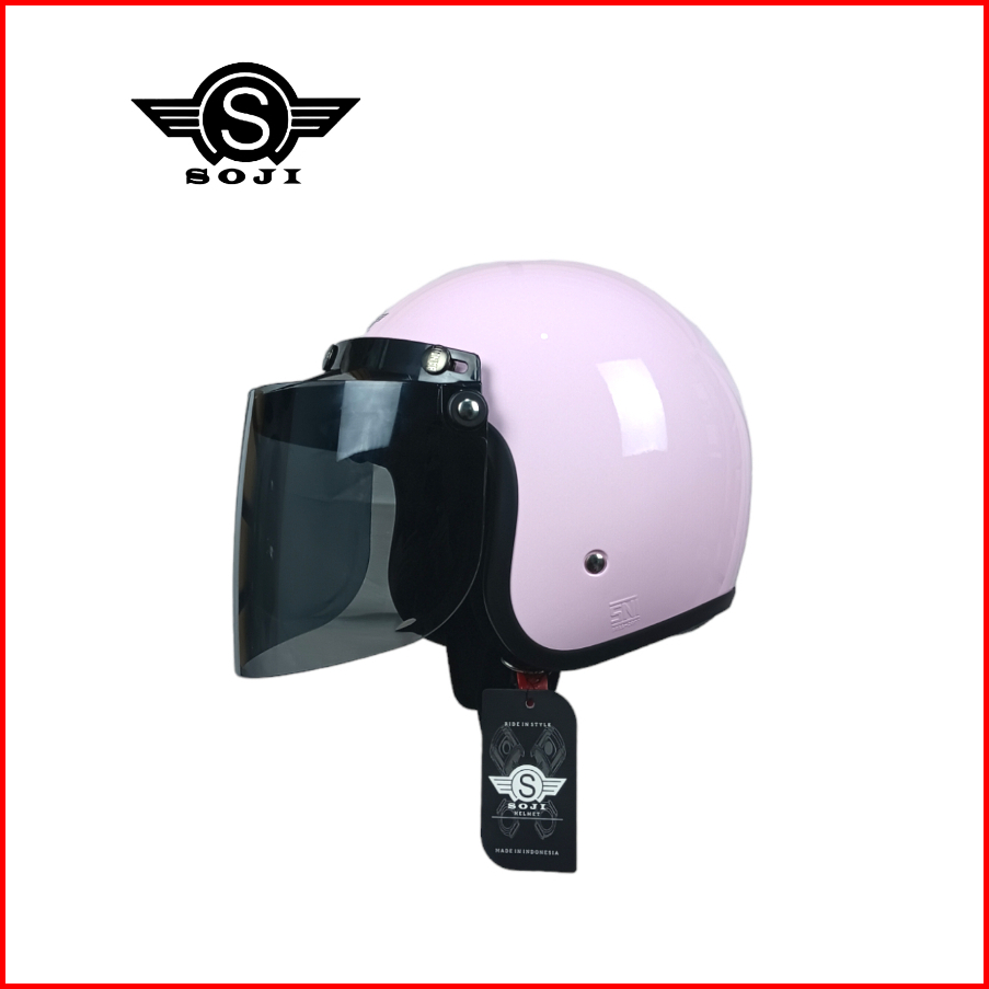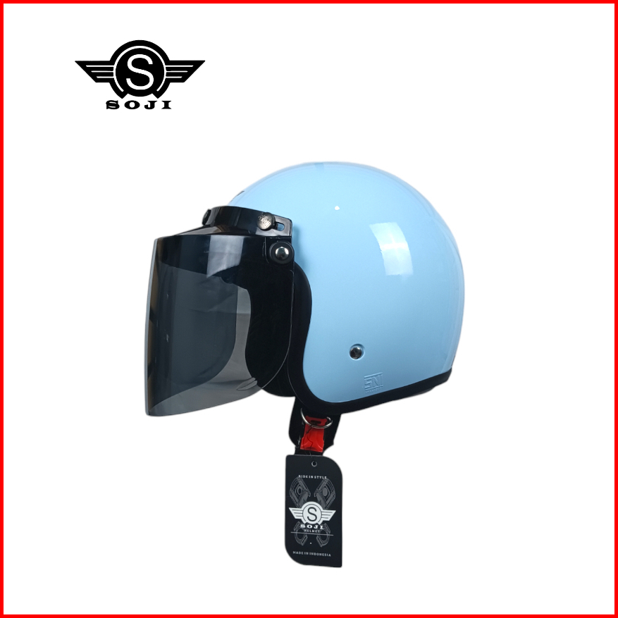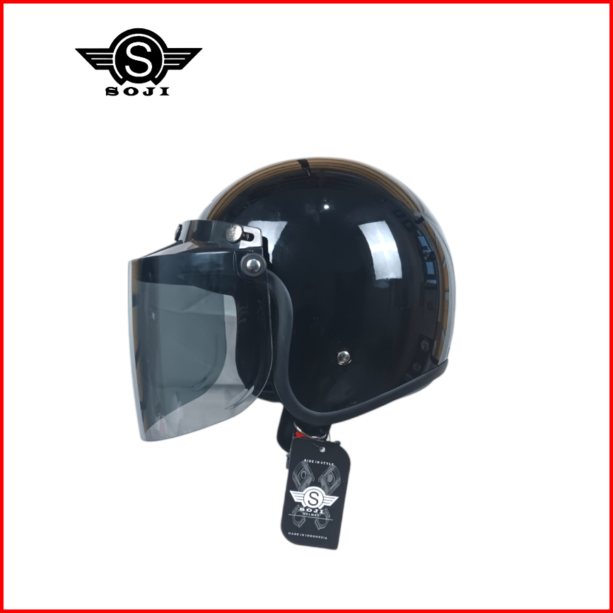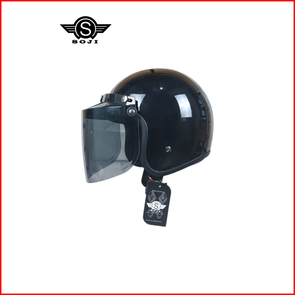 Soji Helm Anak Junior Retro Polos Kaca Datar Hitam