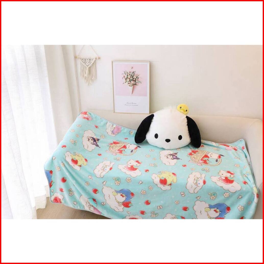 Balmut Bantal Selimut Boneka Cinnamoroll Kuromi Melody Pochacco Dog Pillow Cover Blanket Set