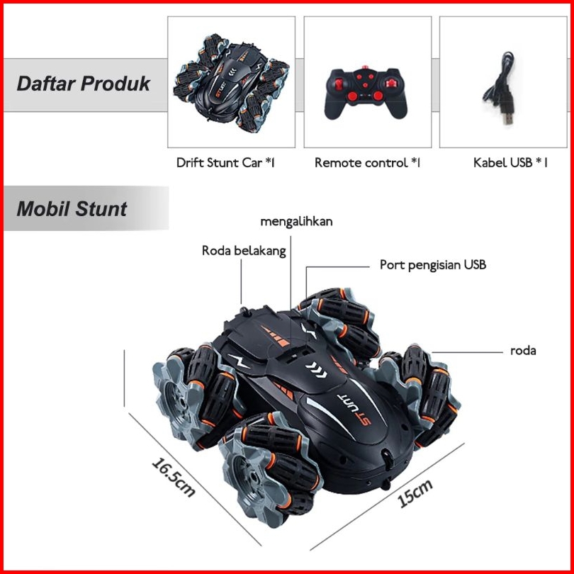 Mainan Mobil Stunt Car Remote Control 2 4ghz Empat Ban Bergerak 4wd Dapat Bergerak Segala Arah High Speed