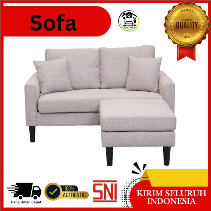 SOFA BED KULIT SELMA TAVOR ABU ABU TEMPAT DUDUK 2 SEATER EMPUK TEBAL TERMURAH FURNITURE INTERIOR RUMAH