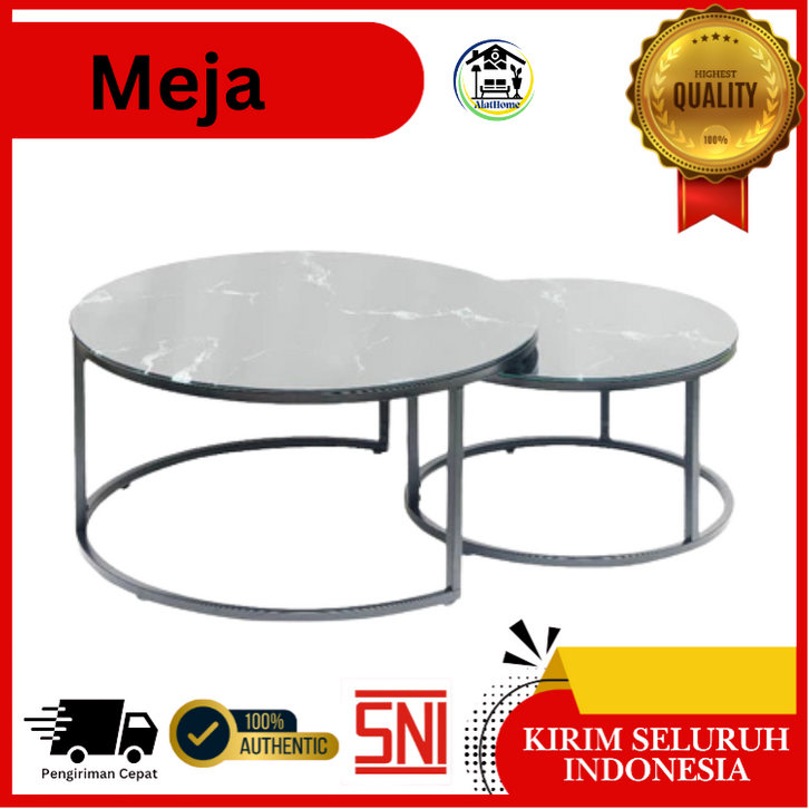 MEJA KOPI SELMA SET 2 PCS MILAN - HITAM COFFEE TABLE AND END RUANG TAMU SERBAGUNA FURNITURE RUMAH AESTHETIC
