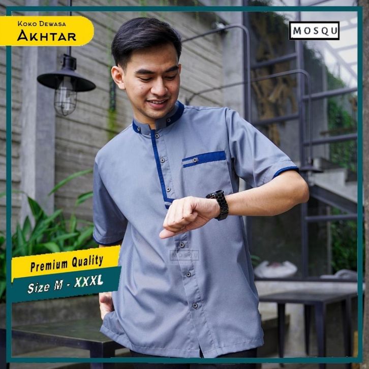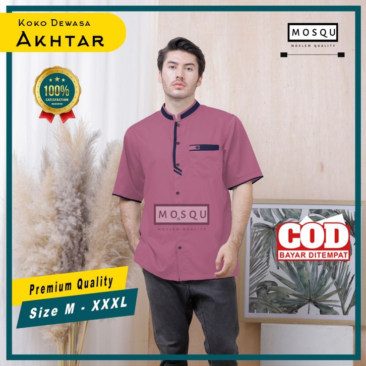 Mosqu Akhtar Baju Koko Pria Dewasa Lengan Pendek Kemeja Koko Size S - 4XL