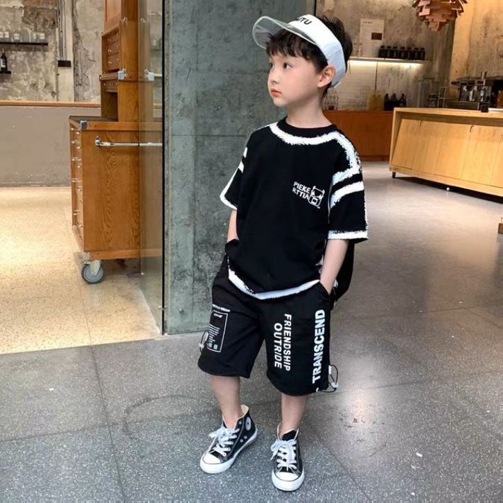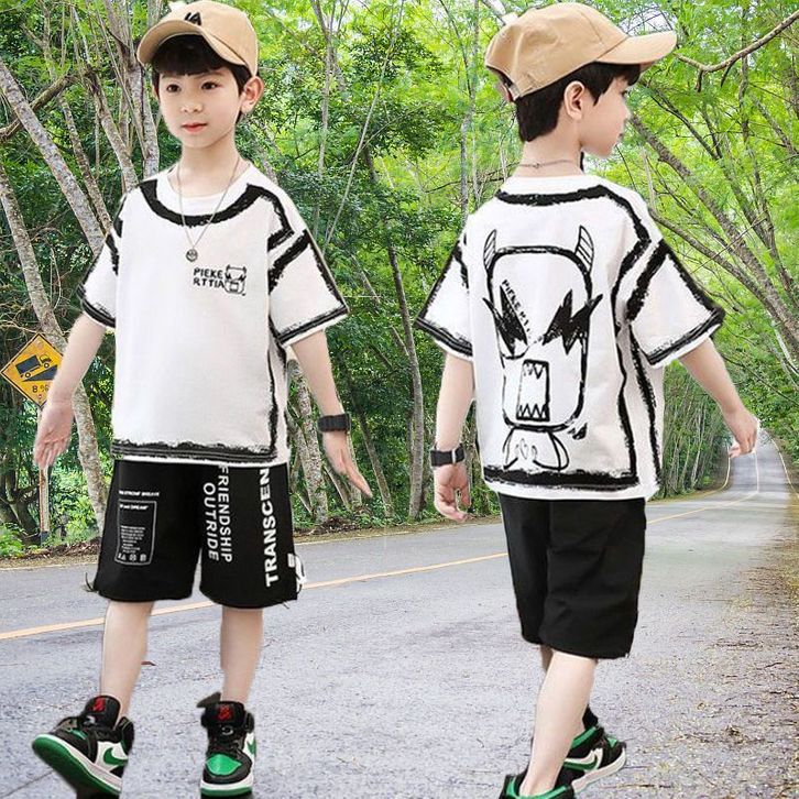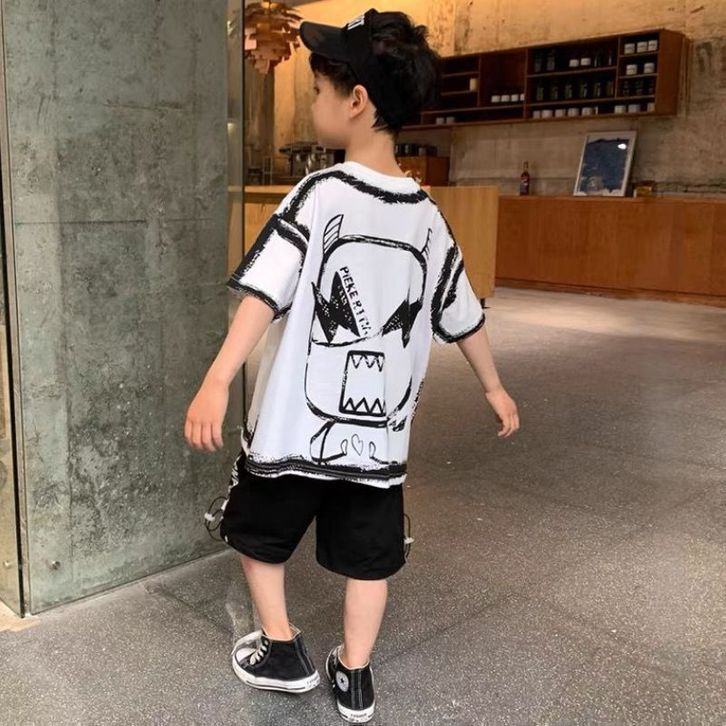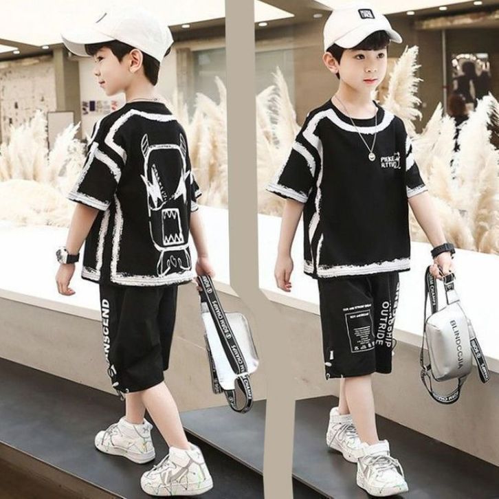 (FLASH SALE) LJS2990 Setelan anak laki laki monster satu set baju lengan pendek celana pendek / anak tanggung cowok