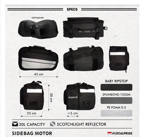 Sidebag motor Side Bag Oval Tas Samping belakang Motor Waterproof Funcover