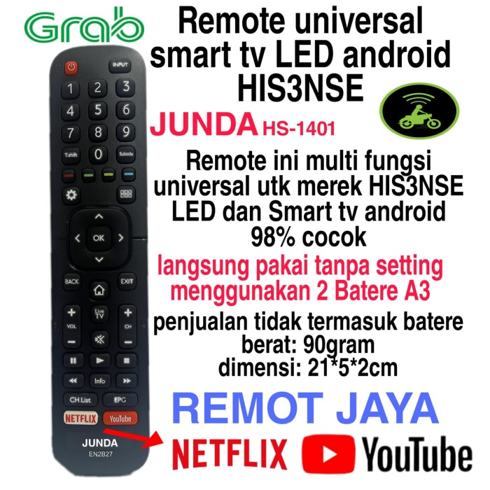 REMOTE LED HISENSE REMOTE SMART TV HISENSE EN2B27 UNIVERSAL JUNDA 1401 - 1402 UNIVERSAL