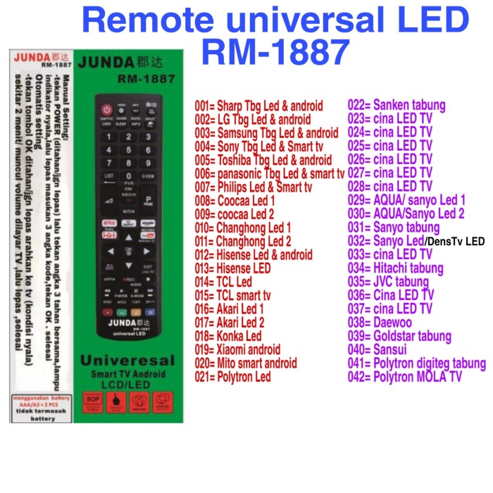 REMOTE TV UNIVERSAL MASTER LCD/LED JUN DA RM-1887