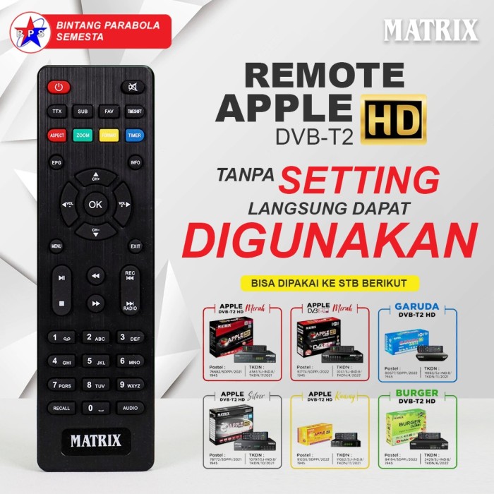 REMOTE SET T0P BOX DVBT2 MATRIX APPLE MERAH