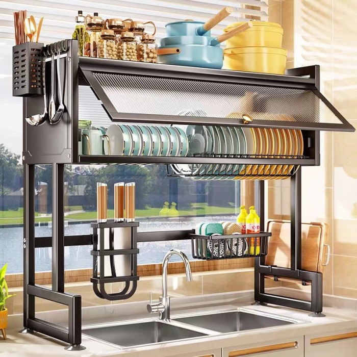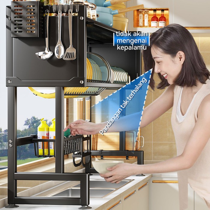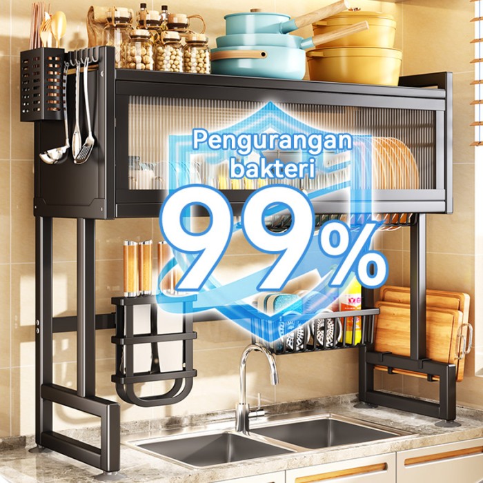 RAK PIRING WASTAFEL DAPUR STAINLESS STEEL RAK WASTAFEL DENGAN PENUTUP - 1 LAPISAN-95CM