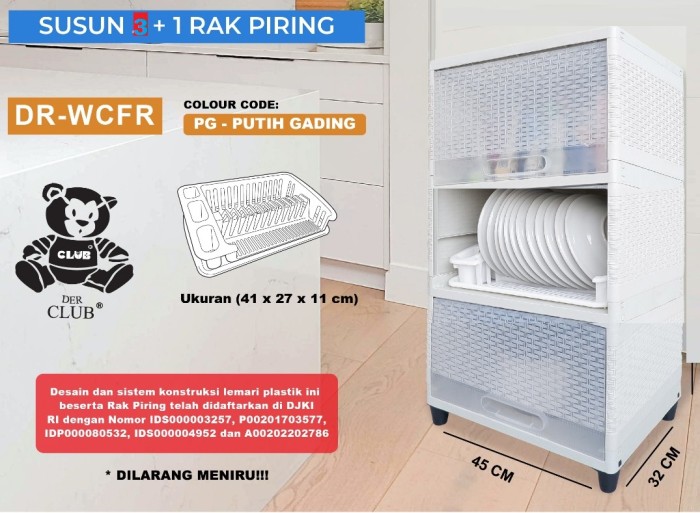 CLUB DISH RACK WIDE FLIP RAK PIRING PLASTIC DR-WCFR PINTU TRANSPARANT - DR1-WCFR-2S