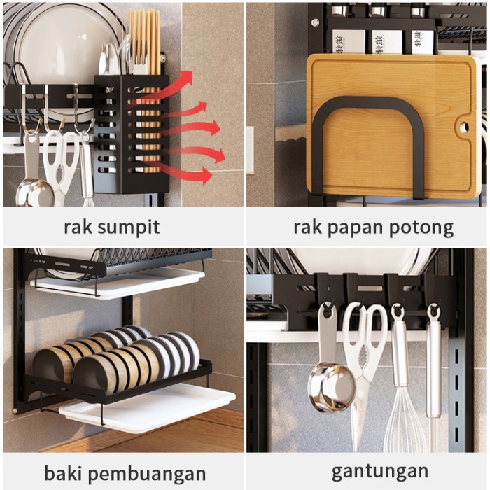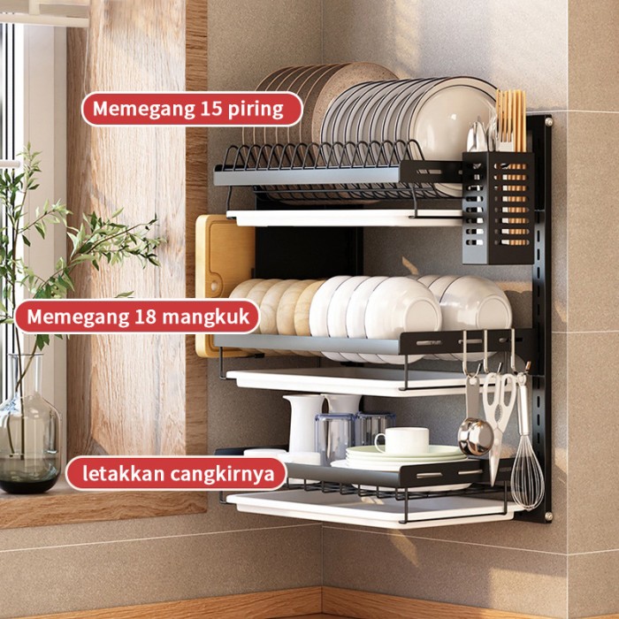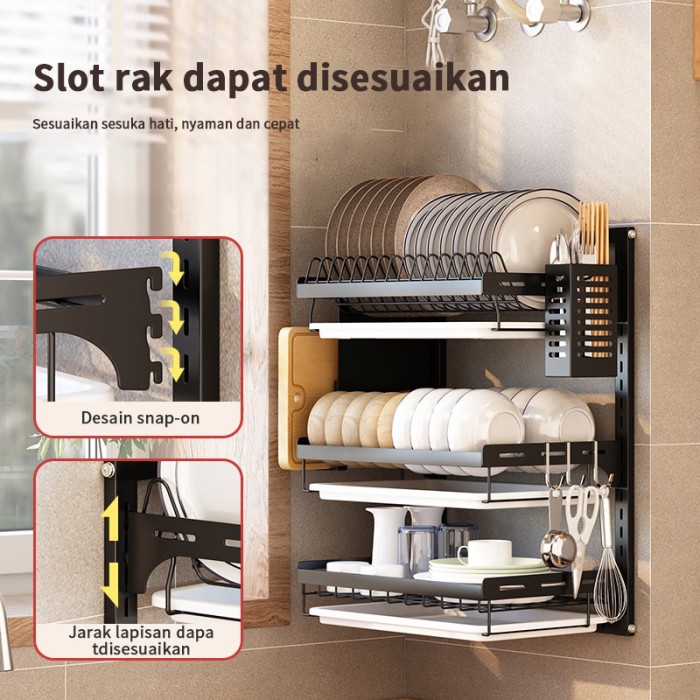 RAK PIRING GANTUNG DINDING STAINLES STEEL RAK PENYIMPANAN MANGKUK RAK PIRING ANTI KARAT - 3 S-GOLD&HITAM