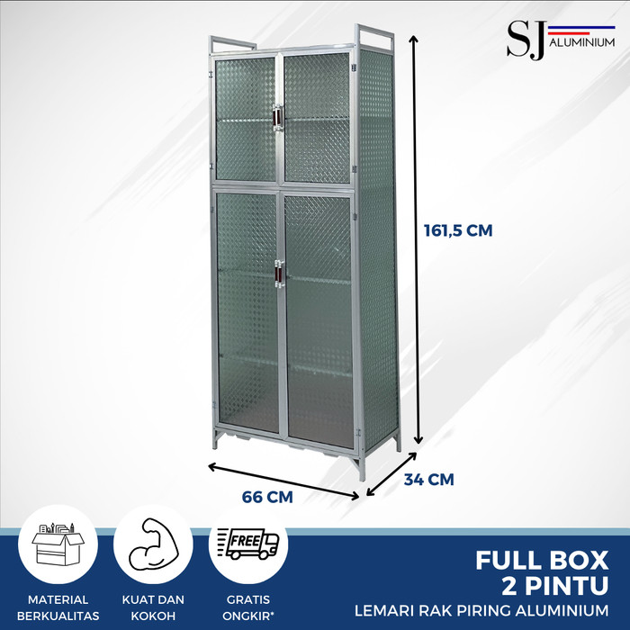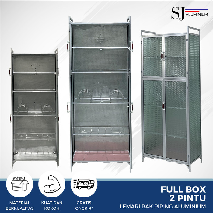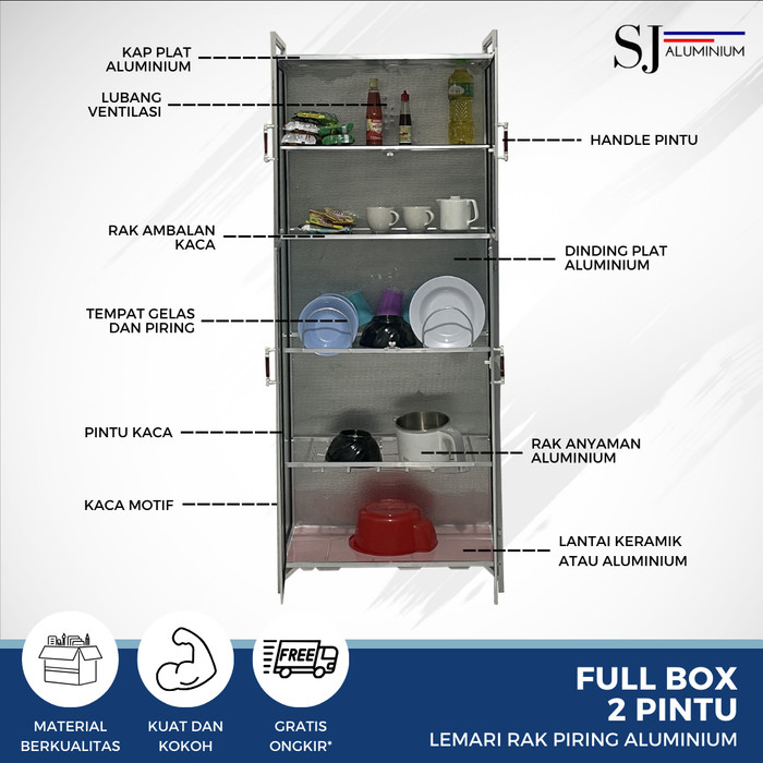 RAK PIRING LEMARI DAPUR KACA ALUMINIUM - FULL BOX 2 PINTU - PLAT ALUMINIUM