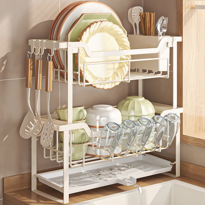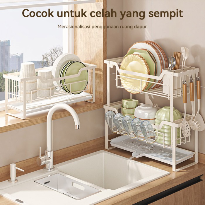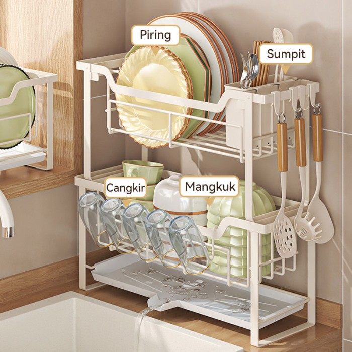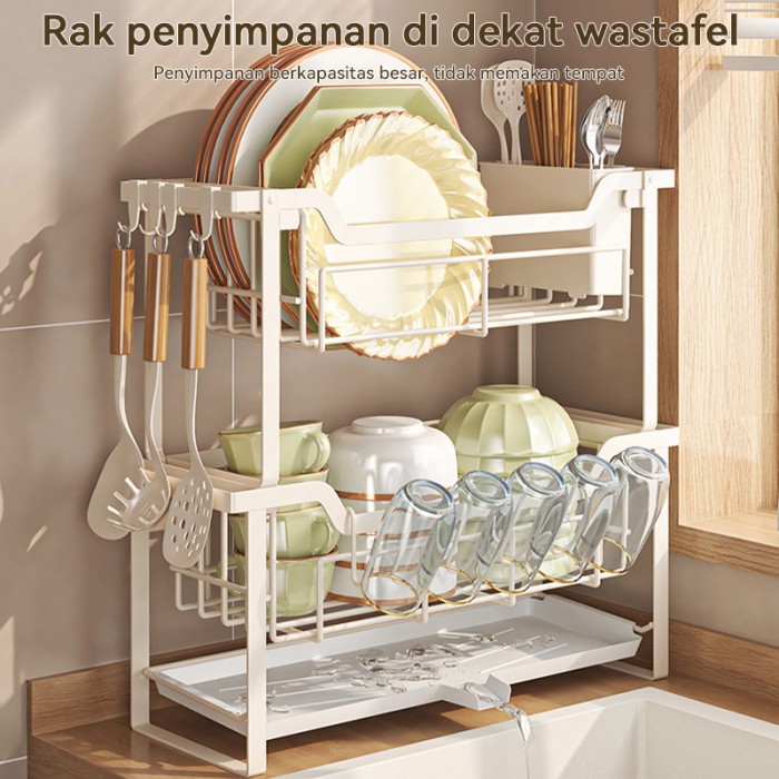 RAK DAPUR NORDIC STYLE STAINLESS RAK WASTAFEL RAK PIRING DAN PERALATAN - PUTIH