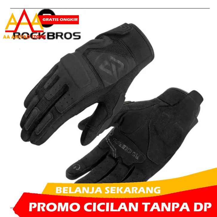 sarung tangan sepeda motor Rockbros original anti slip full finger - Hitam, XL TANPA DP