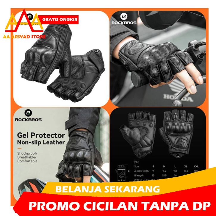 sarung tangan motor half finger Rockbros kulit - XL TANPA DP