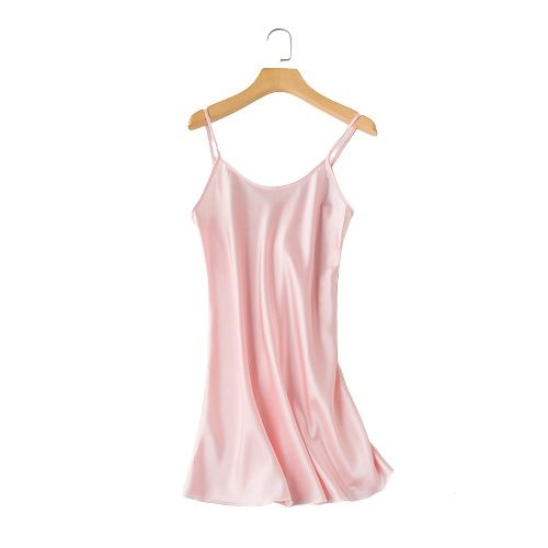 Lingerie Sexy Bahan Satin Baju Tidur Tanpa Lengan Suspender Piyama Rok