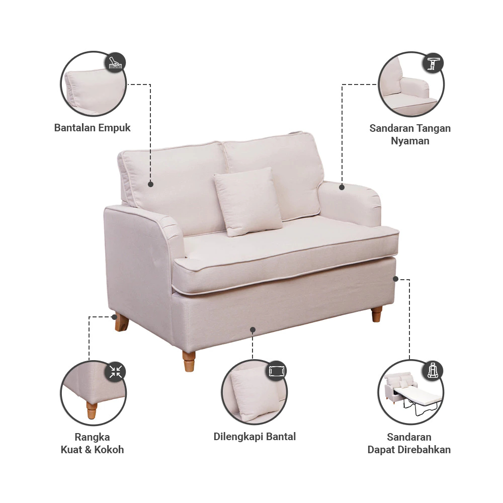 SOFA BED SELMA MARCO 2 SEATER - KREM BEIGE TEMPAT DUDUK MULTIFUNGSI TIDUR 2IN1 KURSI SANTAI SERBAGUNA FURNITURE RUMAH