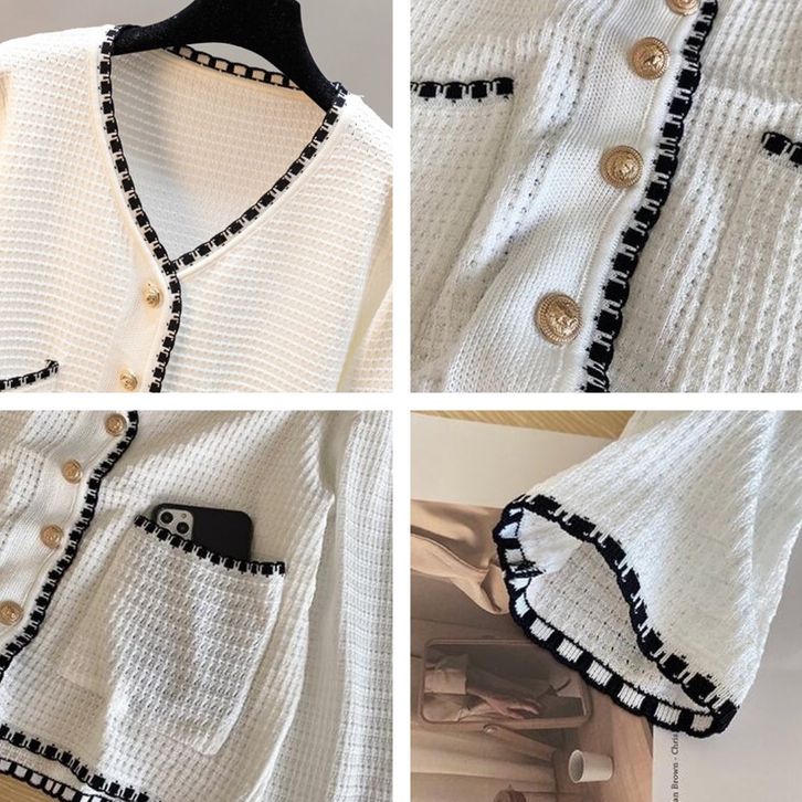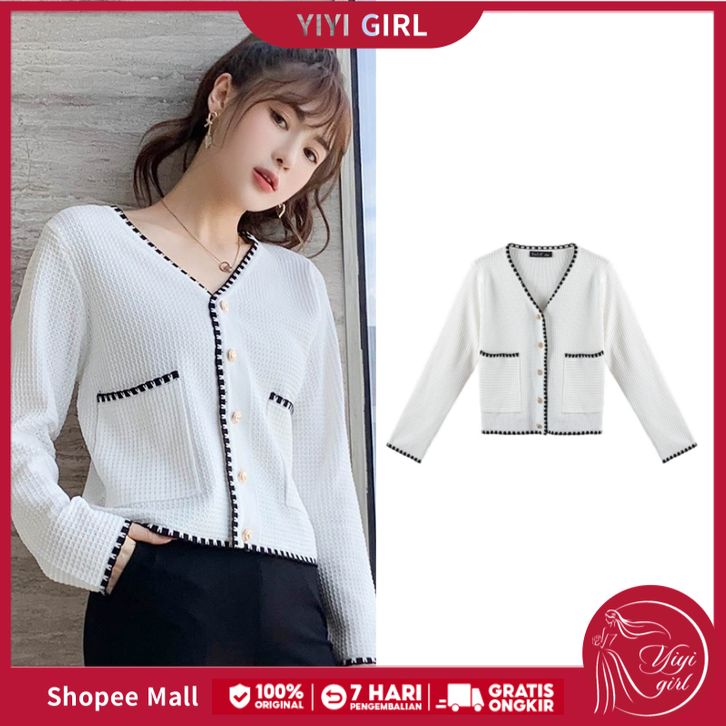 YIYI GIRL Kardigan Rajut Wanita Hitam dan Putih