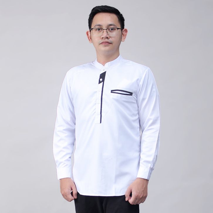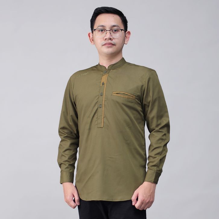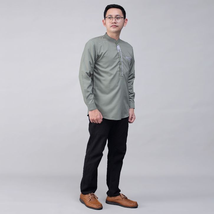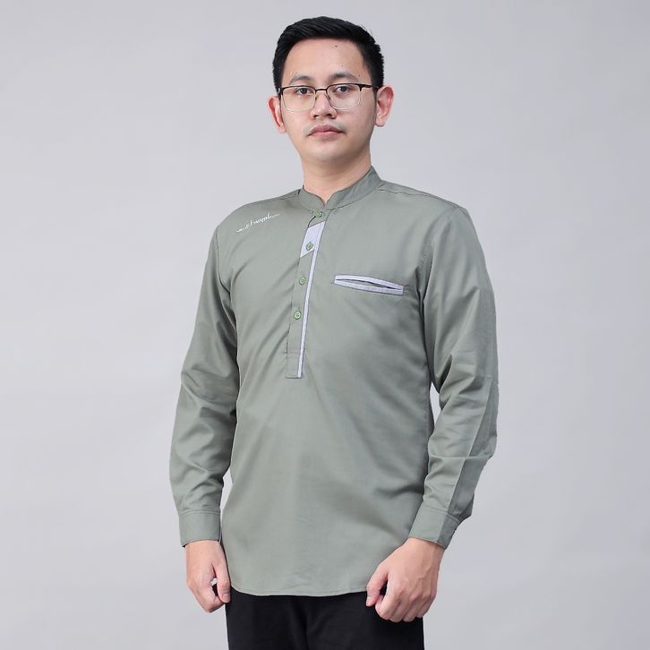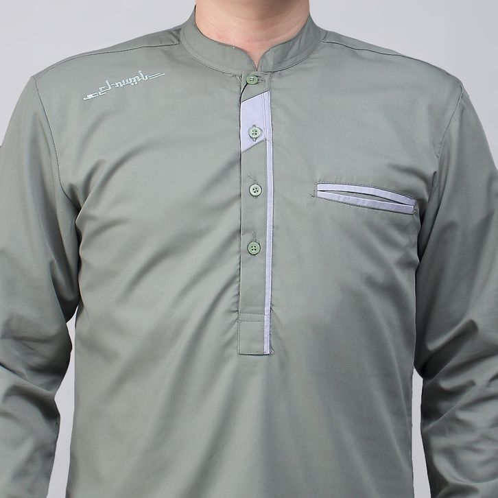 Kemeja Koko Pria Elrumi Lengan Panjang Motif Abizaar Warna Sage