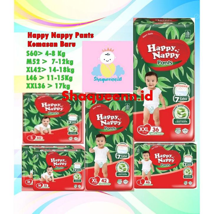 TERLARIS Happy Nappy Smart Pants S60 M52 L46 XL42 XXL36 popok celana kemasan baru egefh