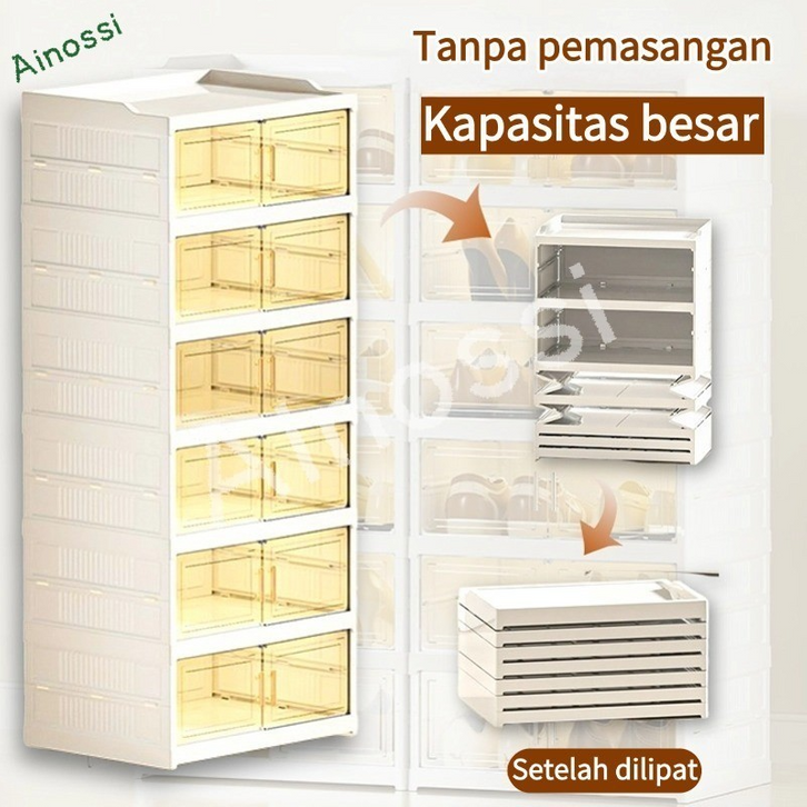 AINOSSI Kotak Sepatu Ukuran Ekstra Bebas Instalasi Shoe Storage Boxes Lipat dan Simpan Multifungsi Lemari Sepatu Tertutu