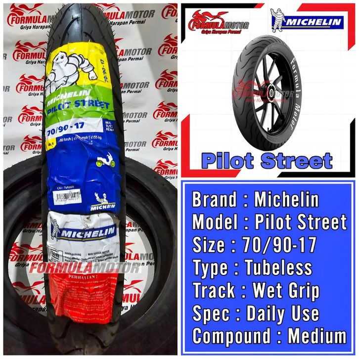 Michelin Pilot Street Uk 70/90-17 Tubeless - Ban Luar Motor Bebek Supra, Karisma, Revo, Vega Ring 17 Super Premium Baru