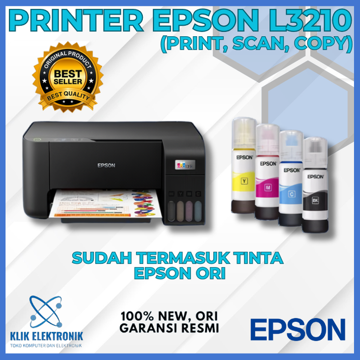 Printer Epson L3210 L 3210 All in One (Print Scan Copy) Tinta ORI Pengganti L3110 L 3110 L360 - Tinta Original Epson