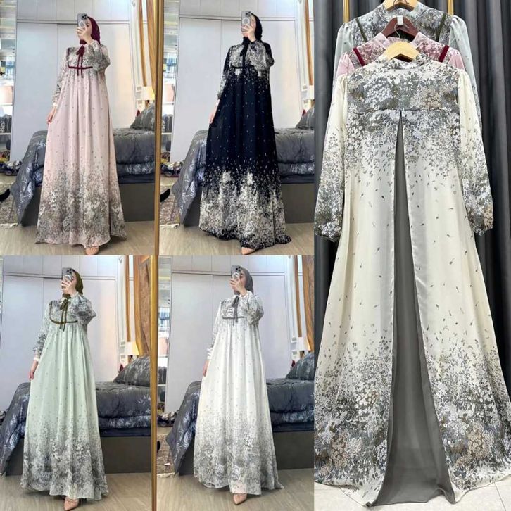 GAMIS SET HIJAB SYIFA DRESS WANITA MEWAH BUSUI FRIENDLY GAMIS CERUTI ELEGAN GAMIS TERBARU 2025