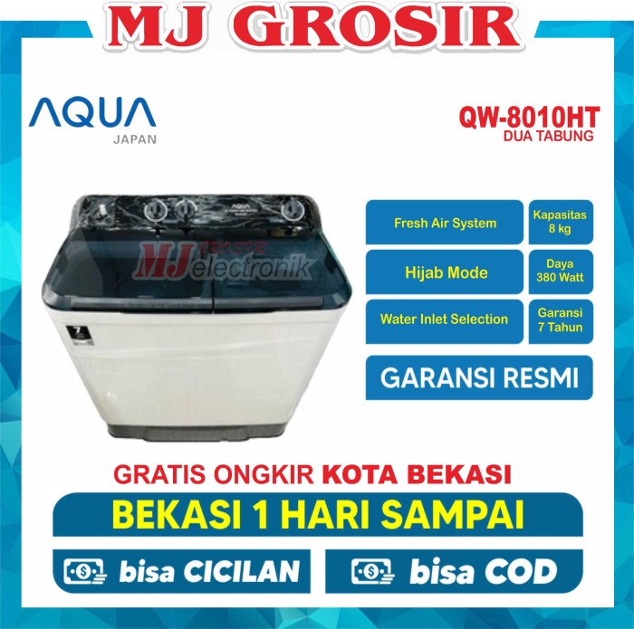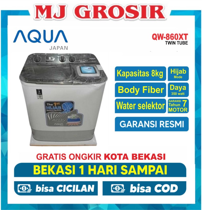 MESIN CUCI AQUA JAPAN QW 860 XT 8KG 2 TABUNG 850 XT HIJAB SERIES - 860 XT, PACKING BUBBLE