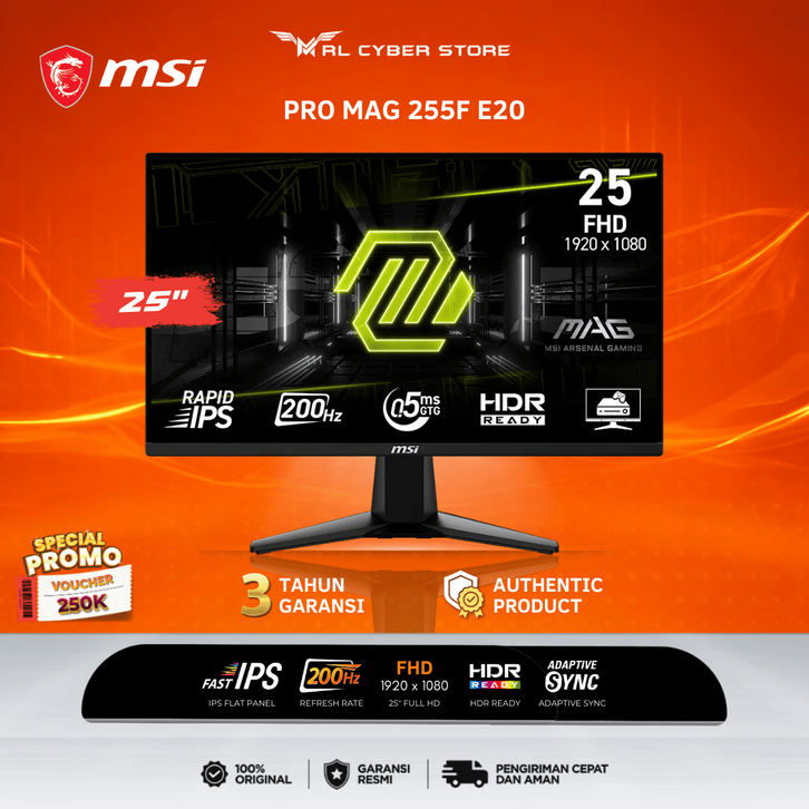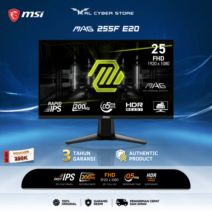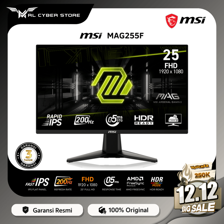 MSI MAG255F E20 MAG 255F E20 24.5" Rapid IPS FHD 200Hz 0.5ms MONITOR PC GAMING 200 HZ GARANSI RESMI