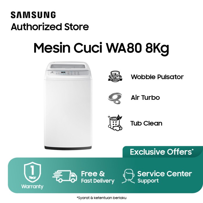 SAMSUNG MESIN CUCI T0P LOADING WOBBLE PULSATOR 8 KG - WA80H4200SW