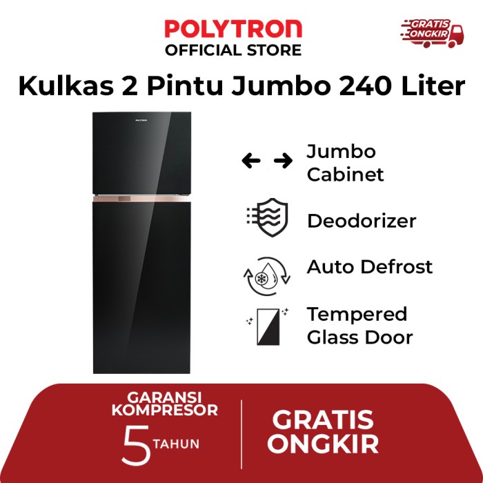POLYTRON KULKAS 2 PINTU BELLEZA JUMBO 240 LITER PRW 25MN - MERAH