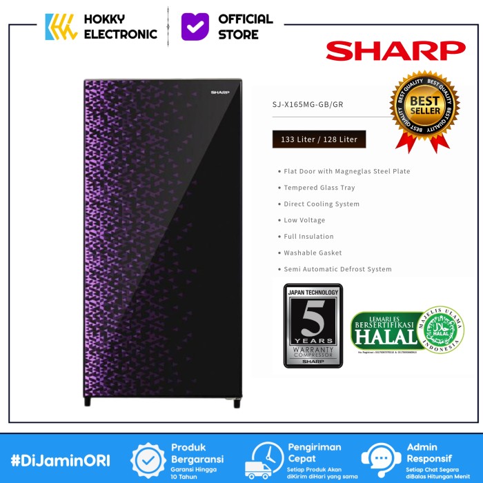 KULKAS 1 PINTU SHARP SJ-X165MG SJX 165 FLAT DOOR BIG FREEZER