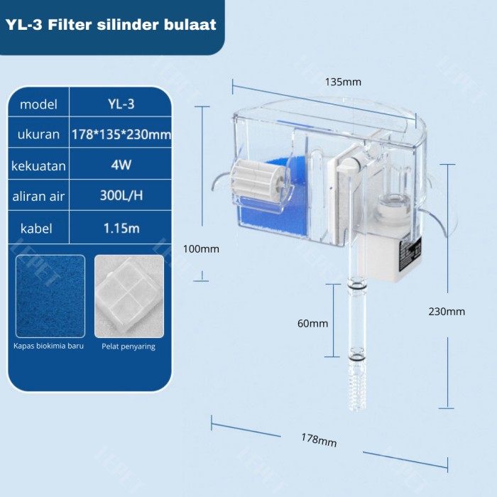 LEPET FILTER AQUARIUM BULAT YL-1/YL-3/YL-5/YL-7 - YL-1