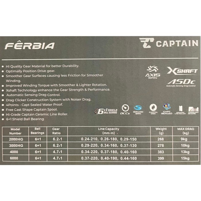 REEL CAPTAIN FERBIA 3000/4000 6+1BB POWER HANDLE - 3000