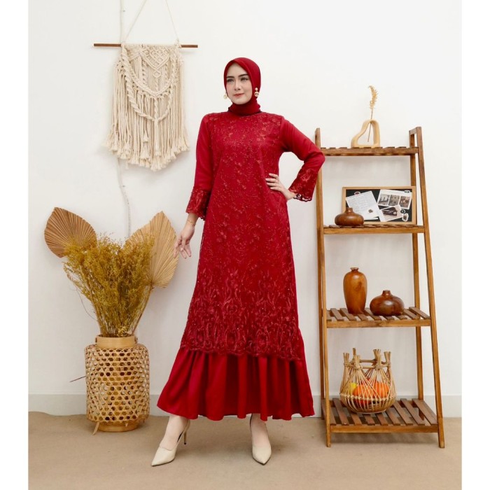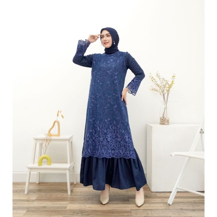 BAJU GAMIS BRUKAT LEBARAN PESTA WISUDA KONDANGAN MAXI DRESS WANITA - NAVY, XXL LD 120-125